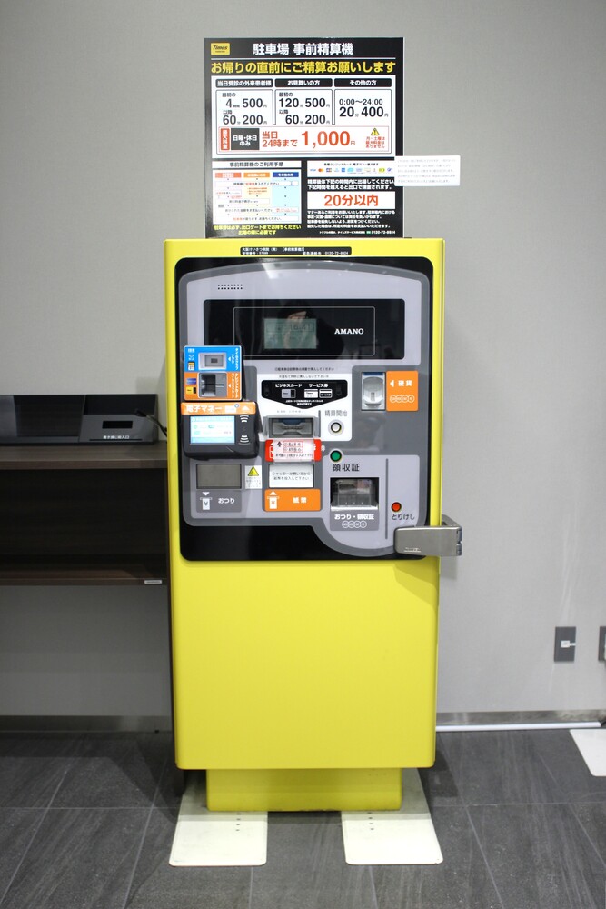 院内の正面玄関前に駐車料金の事前精算機を設置しております。こちらをご利用いただくと駐車場出口での精算が必要なく、スムーズに出庫できます。ぜひご利用ください。