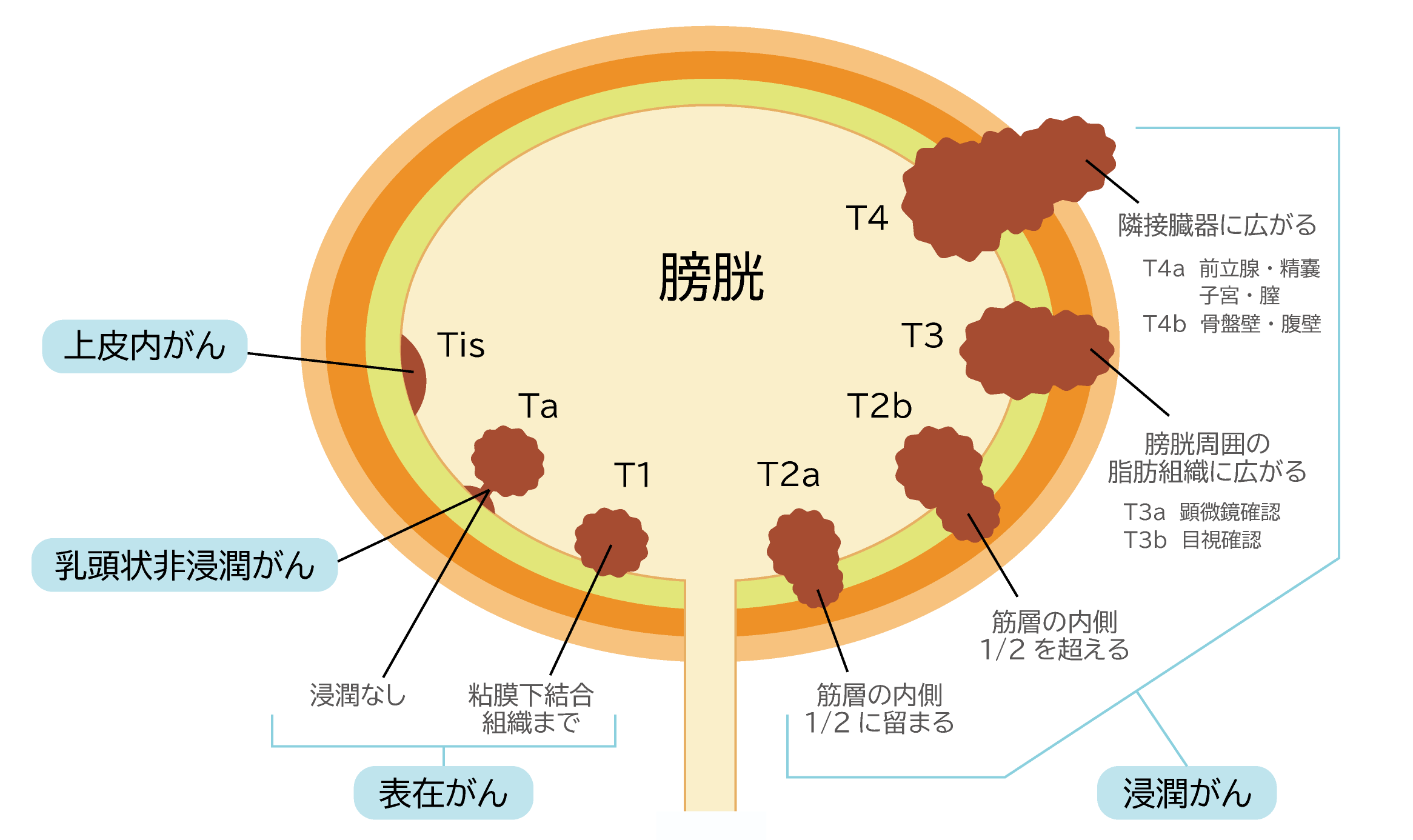 この段階は、がんが膀胱の表面にとどまっている状態です。
