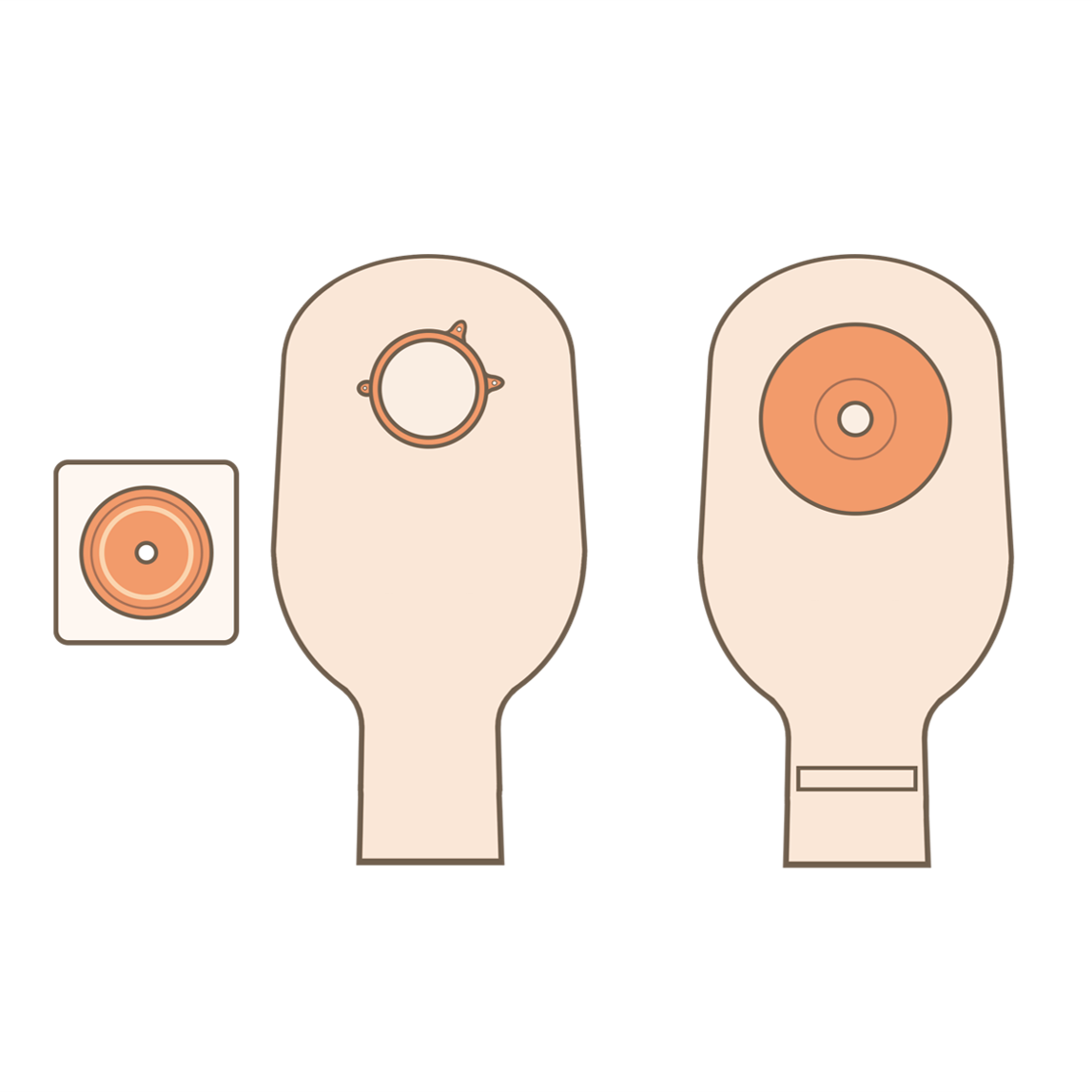 | 回腸導管造設術 | 小腸の一部に左右の尿管をつないで尿をためる場所にします。小腸の先端が右下腹部に出ており、そこが尿の出口(ストーマ)になります。ストーマにパウチという袋を貼って尿をためることになります。 |
