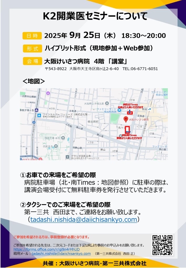 9月25日(木) K2開業医向けセミナーを開催します