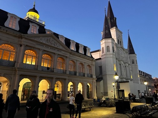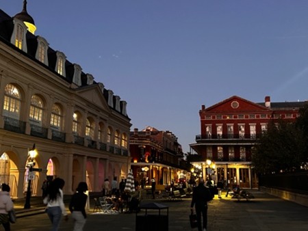 場所はアメリカの南側に位置しておりますニューオーリンズになります。ディズニー映画やディズニーランドの中にもその街並みをモチーフにした作品が数多くあり非常に歴史と文化を感じる街でした。18世紀初頭にフランス領であった歴史からもアイアンバルコニーや石畳の通り、カラフルな彩りが非常に印象的でした。ジャズや絵画といった芸術を好む空気がいたるところに感じられ、路面バスや西アフリカの文化を取り入れたブードゥー(精霊信仰)を模った土産物店もたくさん目にすることができました。陽気な空気に包まれており日本との違い、風土をしっかりと感じることができました。