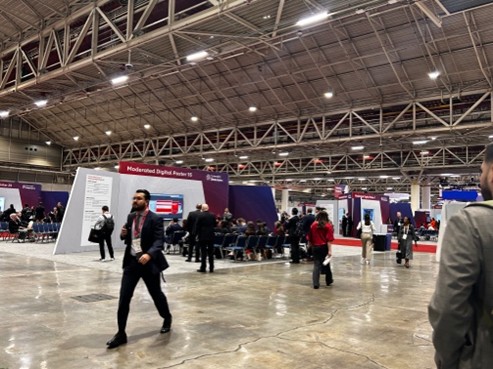 1日目は渋谷先生と吉井先生の発表でした。Moderated e-posterのOralセッションであり2人とも緊張しているのが伝わってきました。渋谷先生はデバイスとアブレーション治療による今後の可能性を、吉井先生は低ADLの包括的下肢虚血患者様における予後予測因子について発表されていました。海外ではよくあるのか発表者が来ていなかったり時間をオーバーしてしまうといったことも見られました笑。日本との文化の違いを改めて感じました。お2人とも規定時間内でしっかりと大きな声で発表をされていて非常に見ていて気持ちよかったです。他の発表内容や質疑応答からもさまざまな意見を吸収することで今後の研究への明確な課題などがわかるようになったとのことでした。