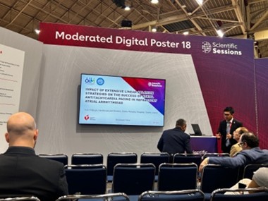 学会2日目は自分のModerate e- posterセッションでした。同セッション内ではさまざまな話題の発表がされており EV-ICDの全米データの解析やブタを使った遺伝子解析での心電図の変化、AIを用いた心電図解析、ペースメーカと重粒子線の影響など非常に多岐にわたっていました。Micraというリードレスペースメーカの単施設での比較検討を発表させていただきました。ESCとはまた違った緊張感で半分頭が真っ白になってしまいましたがなんとかやり遂げることができました。質問を座長の方からしていただいたのですがなかなかきちんと質問を理解できず満足な回答ができず、この点が心残りでした。さらに精進が必要であると痛感しました。今後のためにより一層深いテーマへの考察と回答を導き出せる語学力を磨いていきたいと思いました。