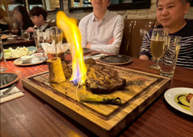 最終日には皆でステーキの美味しいお店に行きました。お腹いっぱいのお肉を食べて非常に元気が出ました。 |