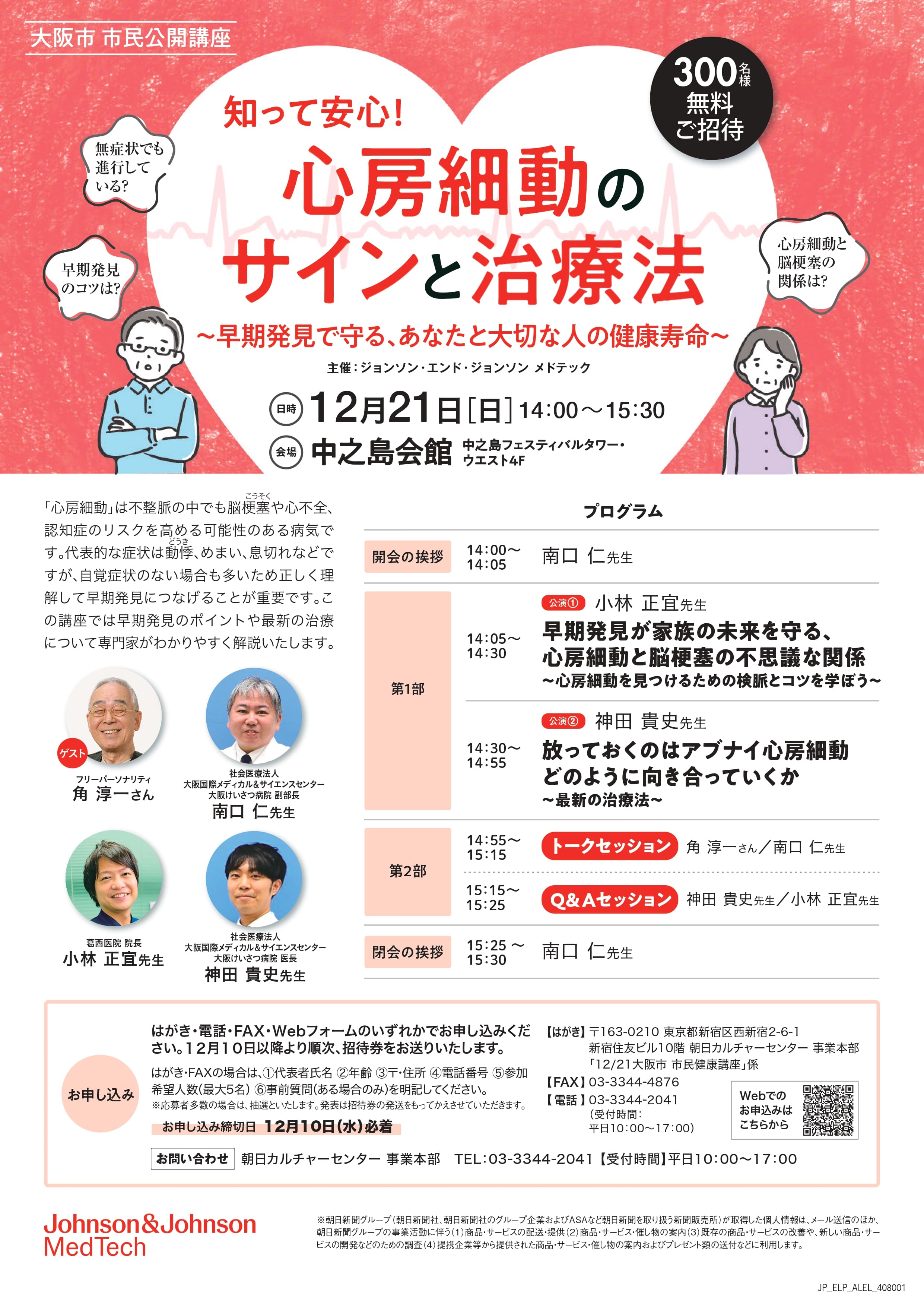 2025年12月21日、中之島会館(中之島フェスティバルタワー)にて、ジョンソン・エンド・ジョンソン メドテックの主催で市民公開講座を開催いたしました 。当日は300名を超える皆様をお迎えし、大盛況となりました 。