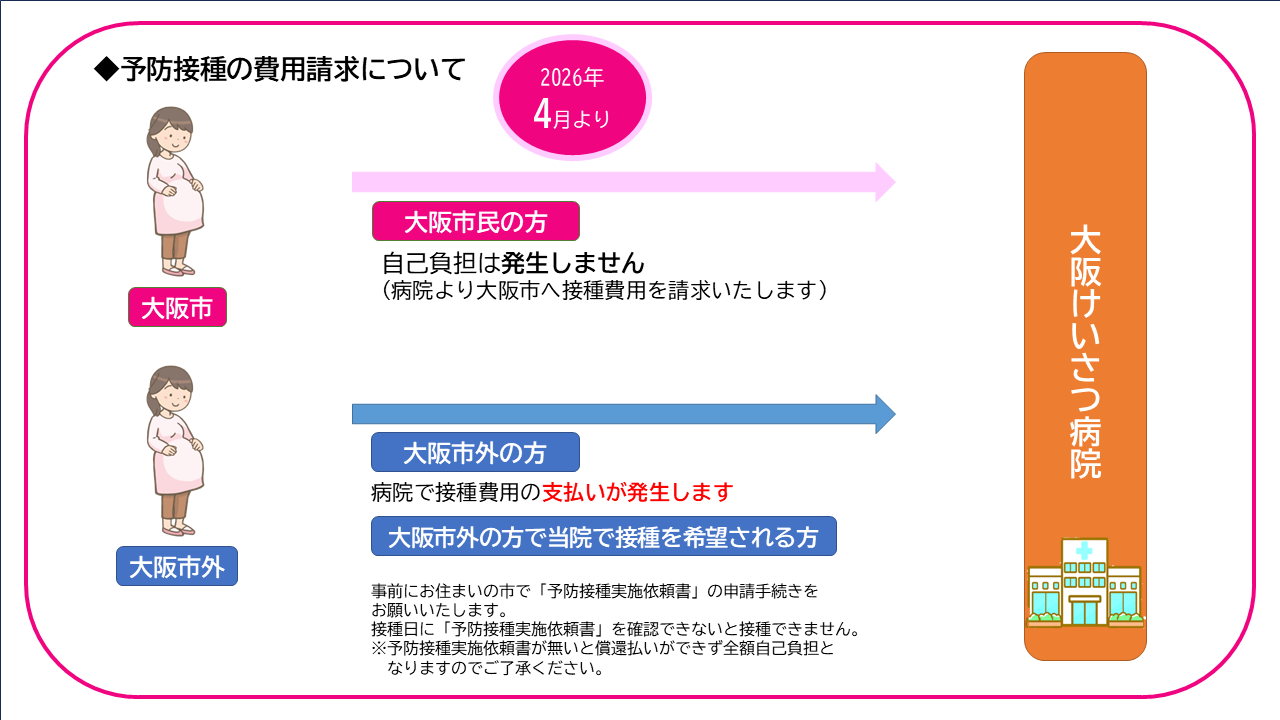 - 大阪市外の方で当院での接種をご希望の方は、事前にお住まいの市で「予防接種実施依頼書」の申請に関するお手続きが必要となります。
