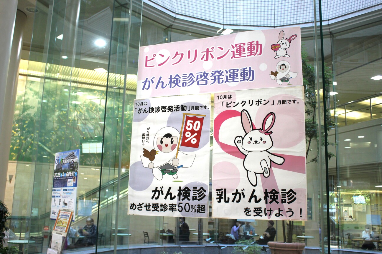 10月はがん検診受診率向上に向けた集中キャンペーン月間・ピンクリボン運動強化月間です。これに合わせ、当院でも10月1日(水)から10月31日(金)まで、がん検診啓発活動・ピンクリボン運動を実施します。