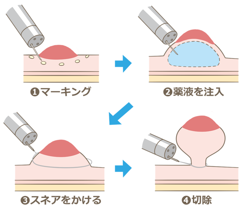 ![]() EMR(内視鏡的粘膜切除術)のイメージ図 |