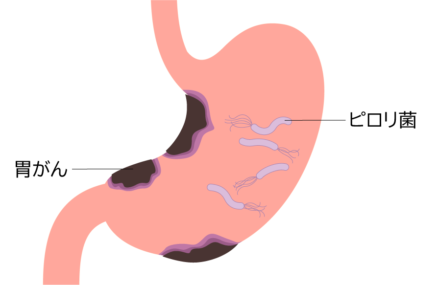 胃がんの大きな原因のひとつに「ヘリコバクター・ピロリ菌(ピロリ菌)」という細菌があります。ピロリ菌に感染すると、長い時間をかけて胃の粘膜が弱り、「萎縮性胃炎」という状態になり、そこから胃がんができることがわかっています。