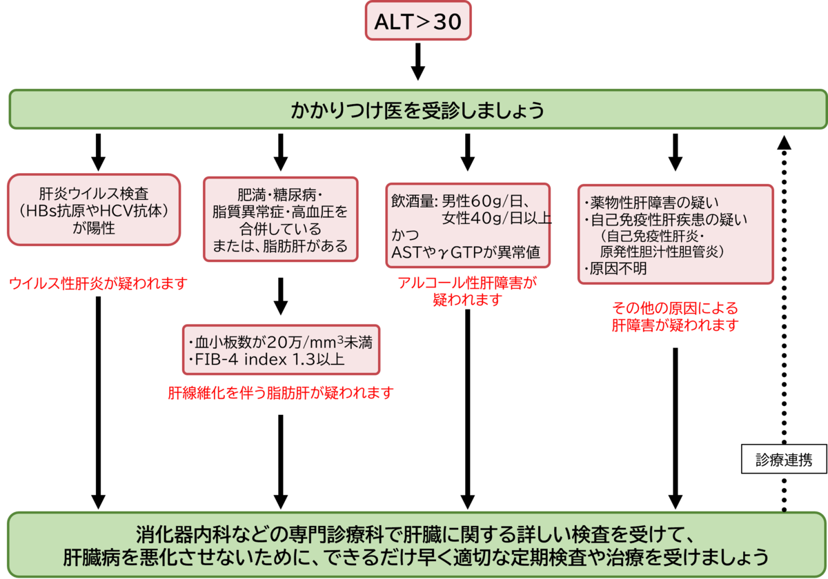 | 健康診断などの血液検査で肝機能を示すALT値がもしも30を超えていたら、 慢性肝臓病(CLD)が隠れているかもしれません