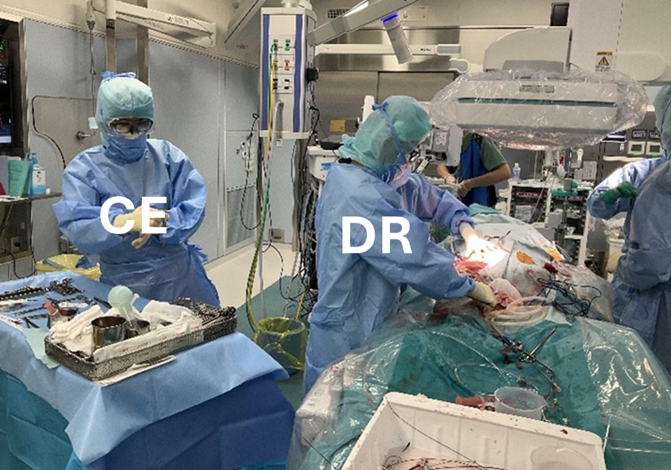手術室業務は16室(うちハイブリッド手術室3室)からなり、臨床工学技士は手術室内にある医療機器の点検やトラブル対応を行っています。また臨床支援業務としては人工心肺業務(3台保有)、清潔介助業務、術中神経モニタリング業務、ストラクチャーデバイス業務(TAVI等)、ダヴィンチ業務(3台保有)等を実施しています。手術室配属の臨床工学技士6名を中心に手術の安全かつ円滑な進行のため医療機器の安全性・信頼性の確保の為、医師・看護師と連携をとりながら日々業務に取り組んでいます。