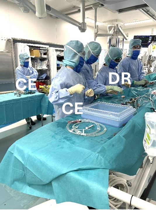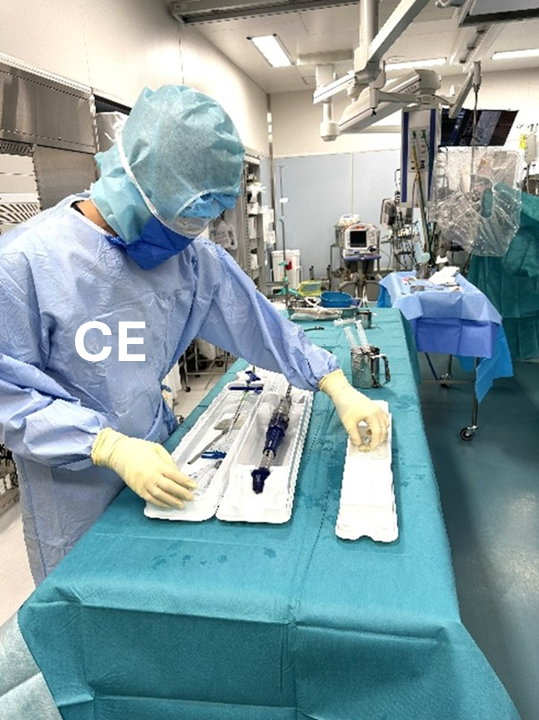 ハイブリッド室で実施されるTAVIやMTEER、左心耳閉鎖(ウォッチマン)に臨床工学技士が携わっています。業務内容は各デバイスのローディングや緊急時対応が主な業務となり、SHDチームを中心に業務を行っています。