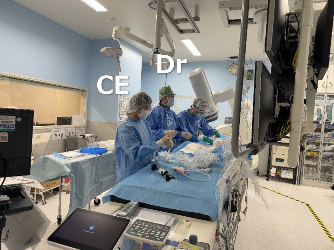 最新のデバイス(日本で初めて使用されるデバイスなど)・新しい治療法の考案も行っており、本領域の医学の進歩にも大きく貢献しております。さらに多くの治験や他施設研究も積極的に行っており、臨床工学技士もその一員として貢献しております。