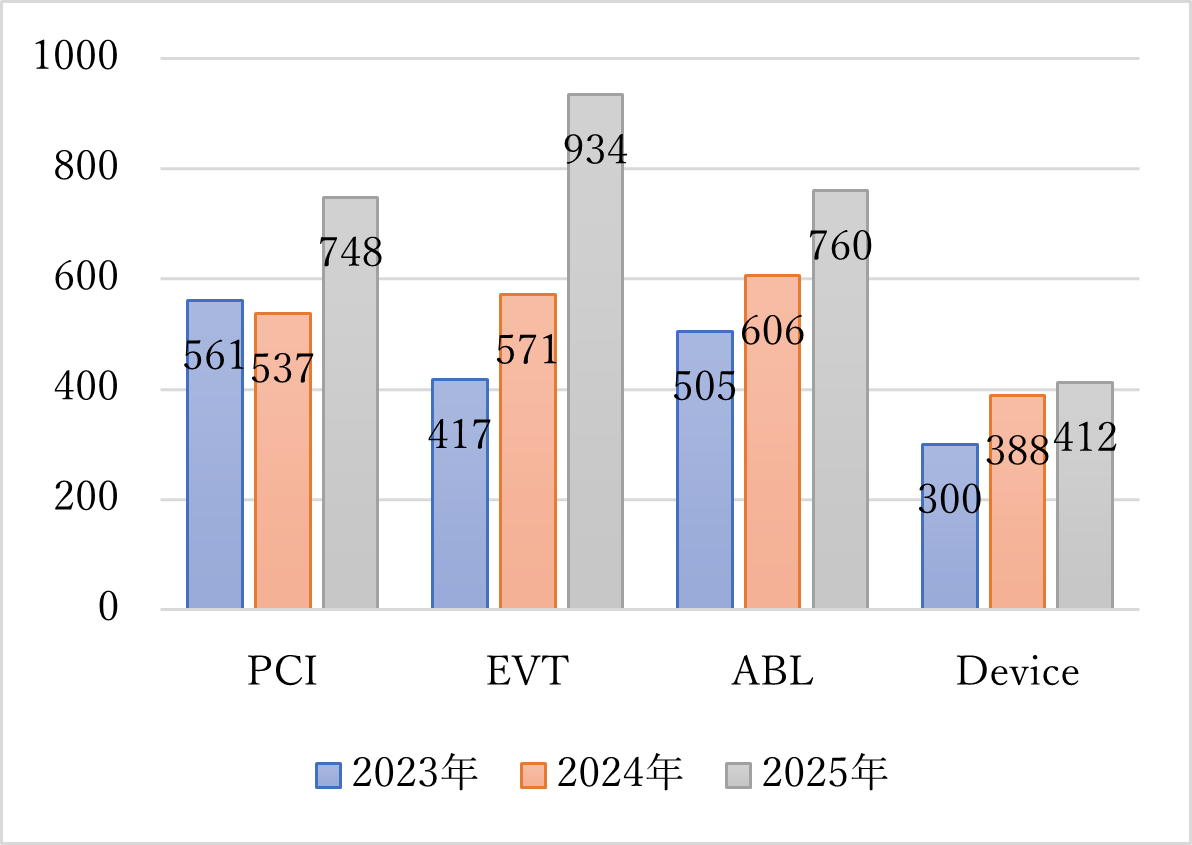 2025年より新病院となり、患者数および緊急症例の増加により、過去に比べて飛躍的に症例数が増加しました。それに伴い複雑病変に対する症例も数多くあり、アテレクトミーデバイスなどを含めた特殊装置を用いて適切に治療を行っております。